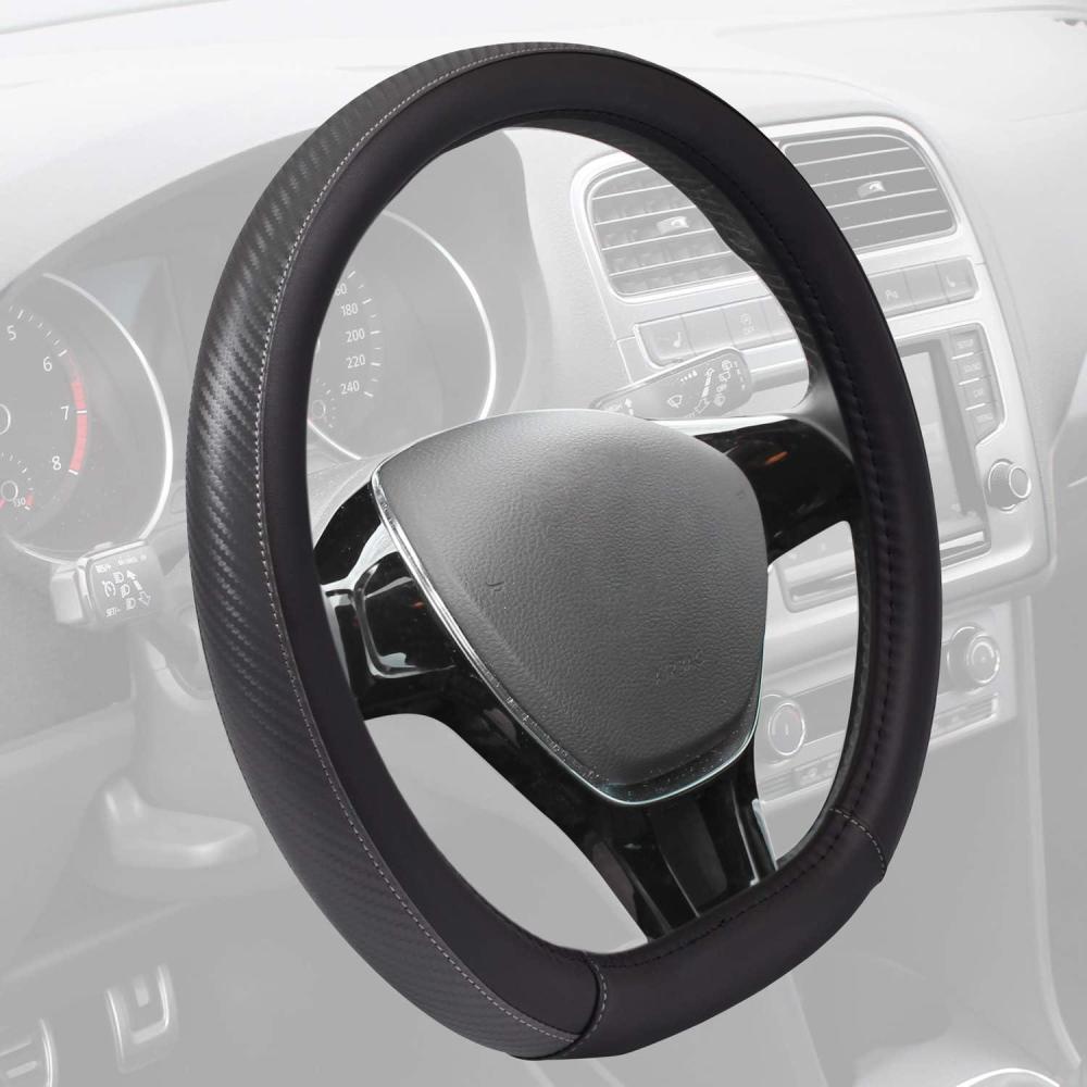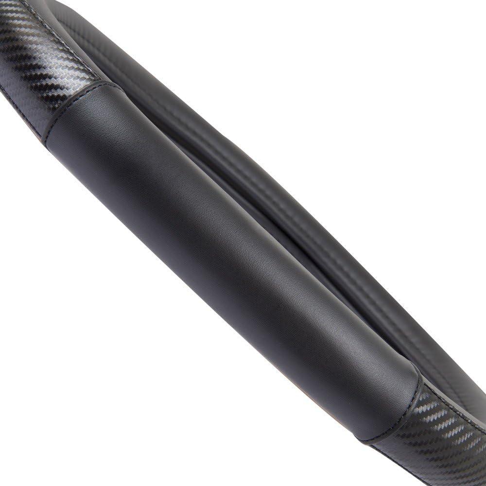 BDK Carbon Fiber Steering Wheel Cover White Vinyl with Fiber Accent – Black Carbon, 14.5-15 inch(Black)
