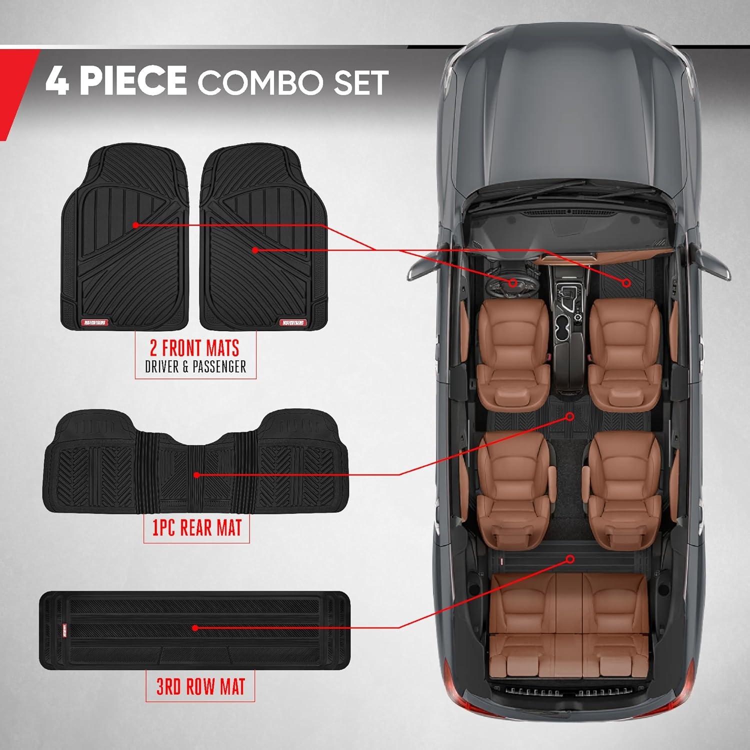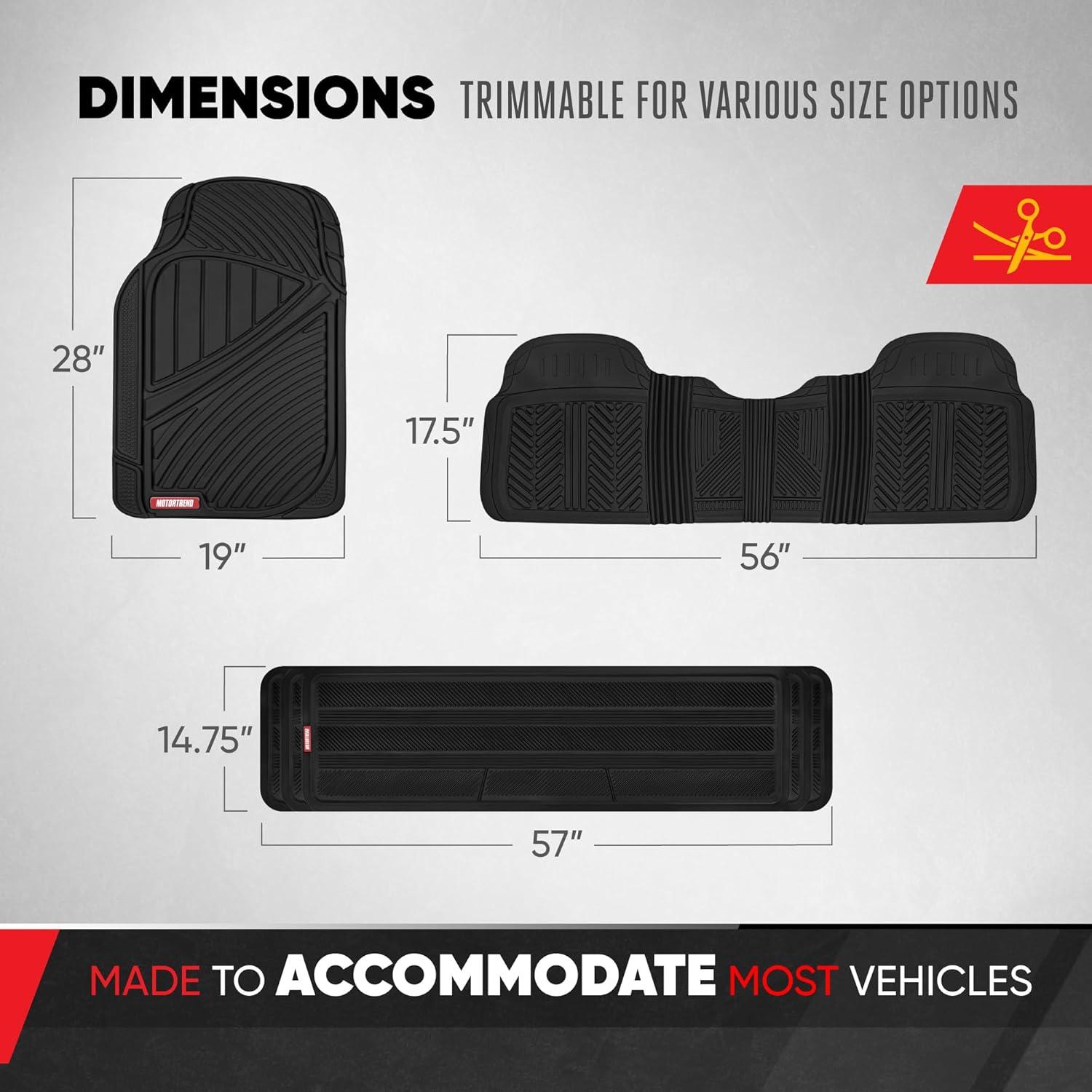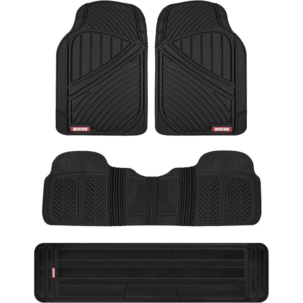 Motor Trend 3 Row Odorless Rubber Floor Mats & Liners for Car SUV Van, Durable Heavy Duty Polymerized Latex Full Interior Protection, Extra-High Ridgeline Design, Black, Model Number: MT-773-801-BK(Black)