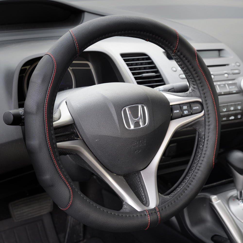 Motor Trend Ergonomic Grip Steering Wheel Cover/Protector for Small Size Steering Wheels in Cars, SUVs, Boats (13.5-14.5″) (Grip Drive Pro Comfort Grip (Black/Black Stitching))((Black / Red Stitching))