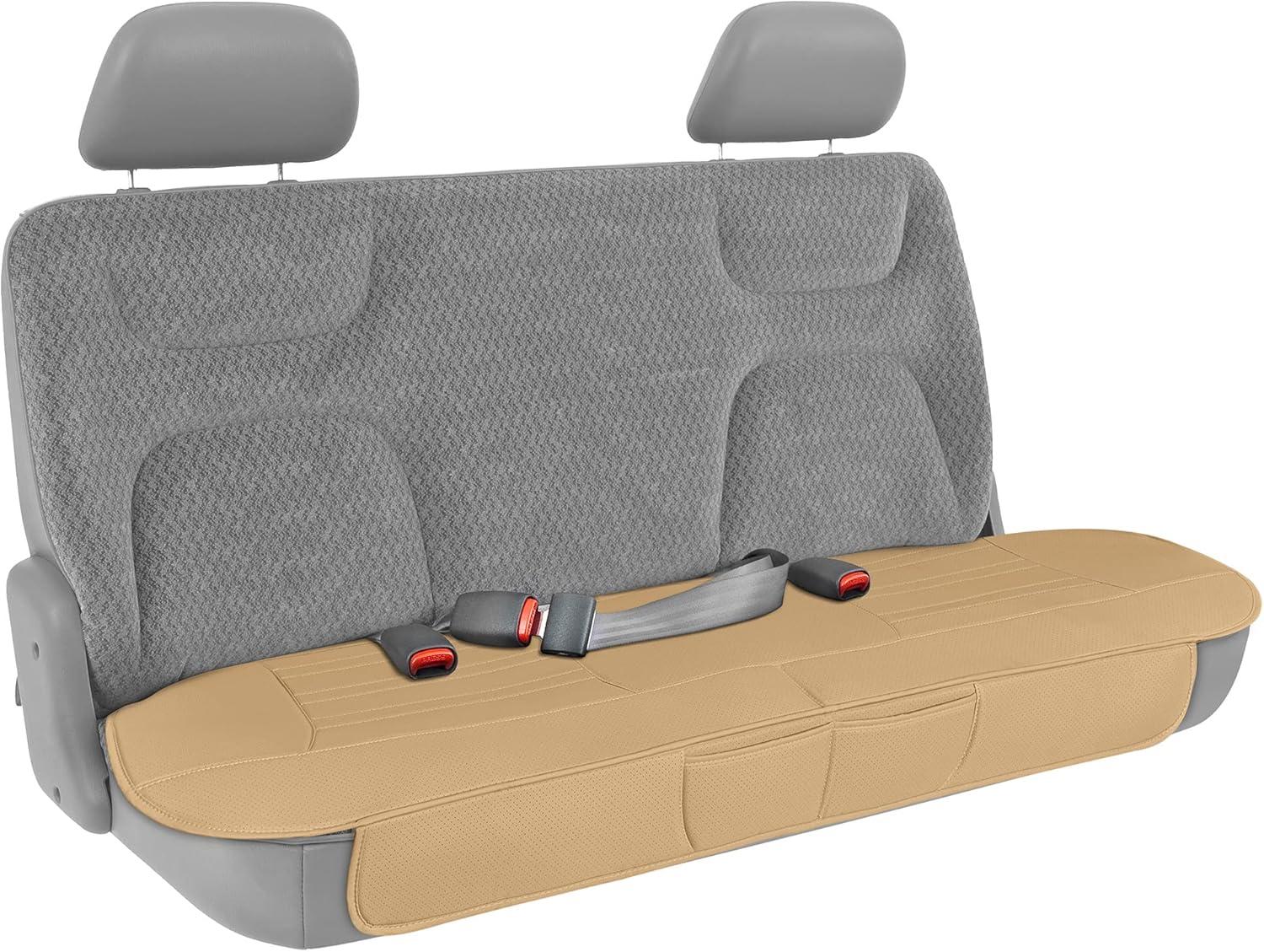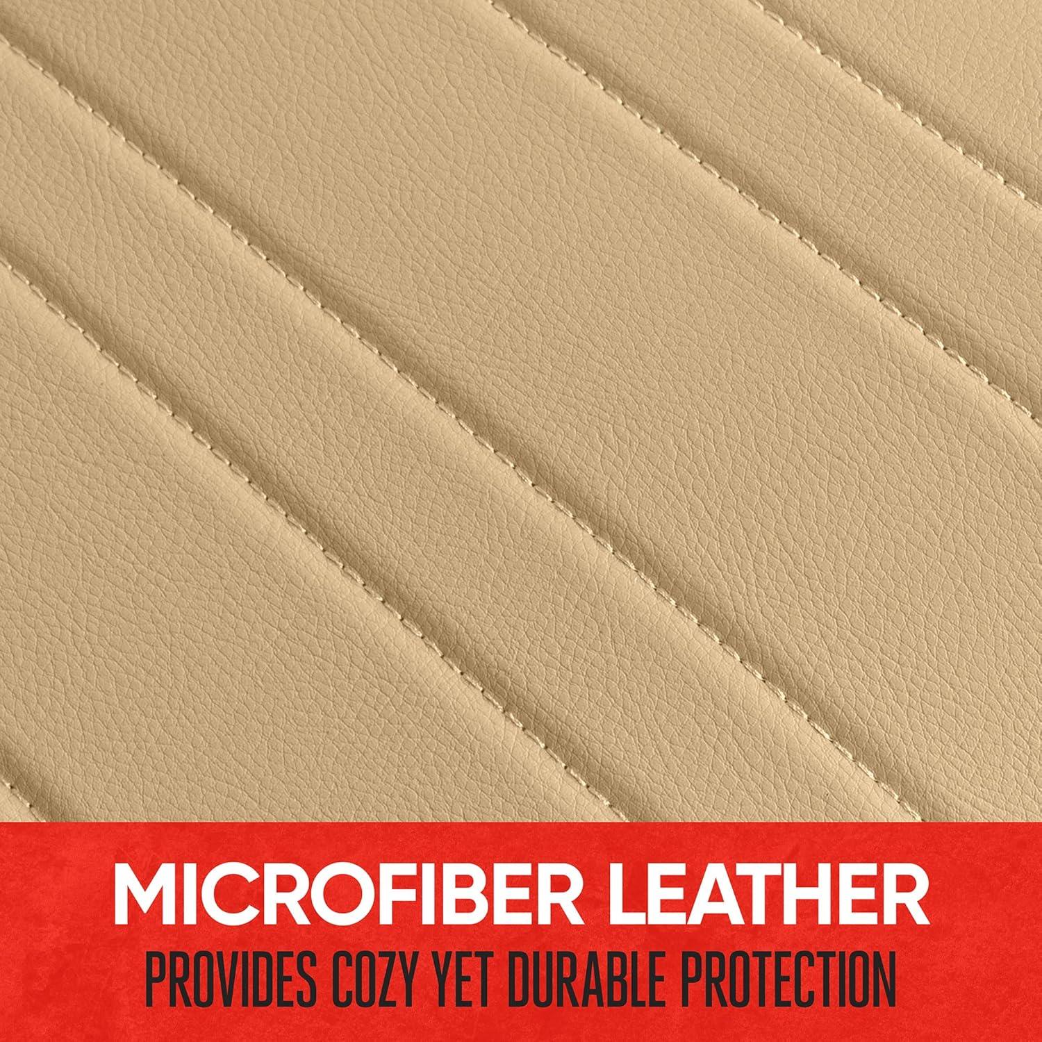 Motor Trend Seat Covers for Cars Trucks SUV, Faux Leather Full Set Blue Padded Car Seat Covers with Storage Pockets, Premium Interior Car Seat Cover(Tan Beige)