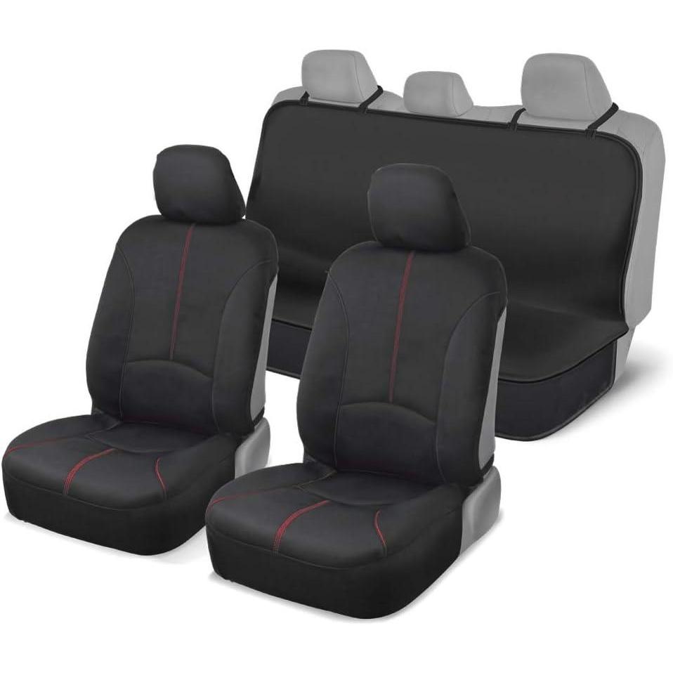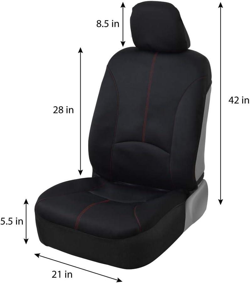Protect your vehicle’s interior with the Motor Trend SpillGuard Waterproof Seat Covers, designed to shield your front seats from spills, stains, and everyday wear. This 2-pack set is crafted from premium neoprene material, offering reliable waterproof protection while maintaining a sleek and stylish look with eye-catching red stitching. Perfect for cars, trucks, vans, and SUVs, these seat covers are ideal for drivers who value both functionality and style.